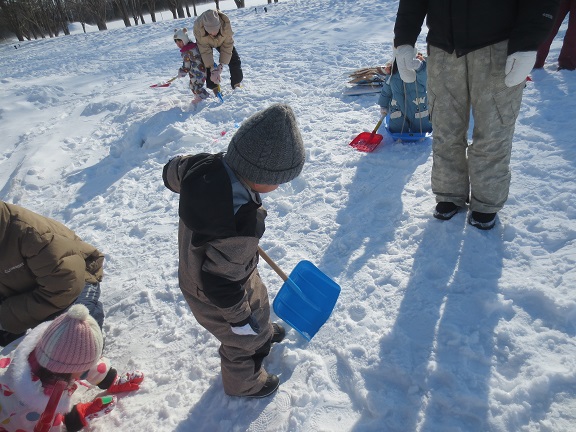 園庭にある築山でそりすべり🛷をしたり、色氷を探したり、スコップで雪を掘ってみたり…思い思いに冬ならではの遊びを楽しみましたよ♪