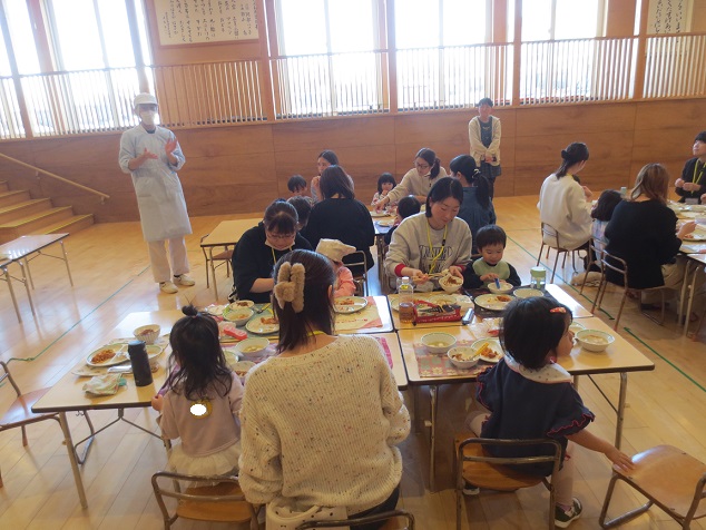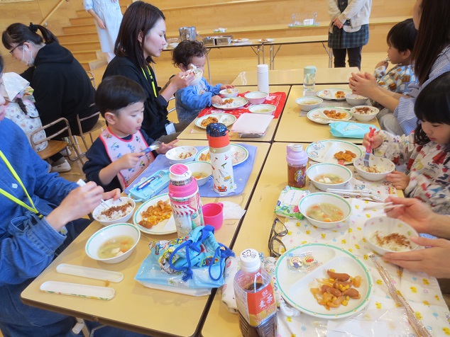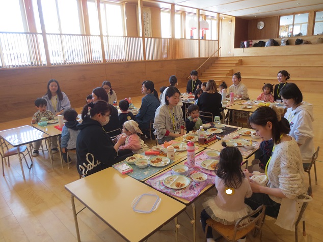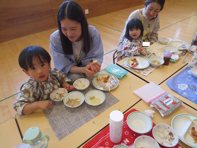 お友だちやお母さんと楽しく食事をして、いつもよりたくさん食べていたお友だちもいたようです。