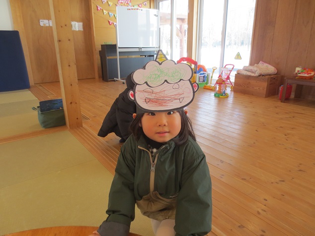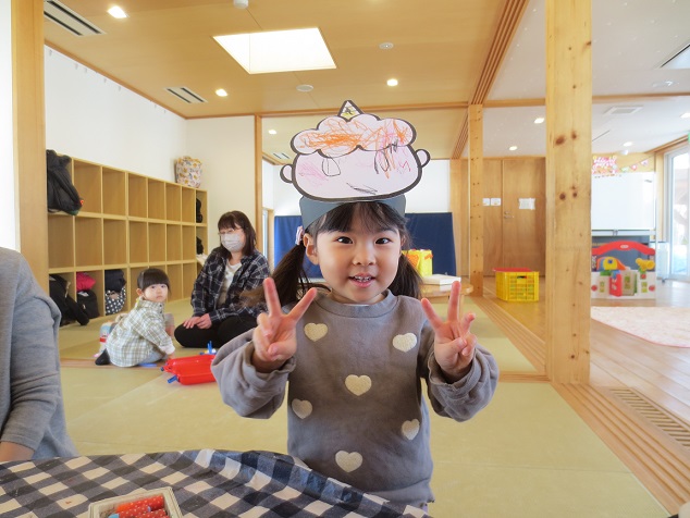 1月30日のにこにこの日では、もうすぐ節分ということで、鬼のお面作りをしましたよ♪